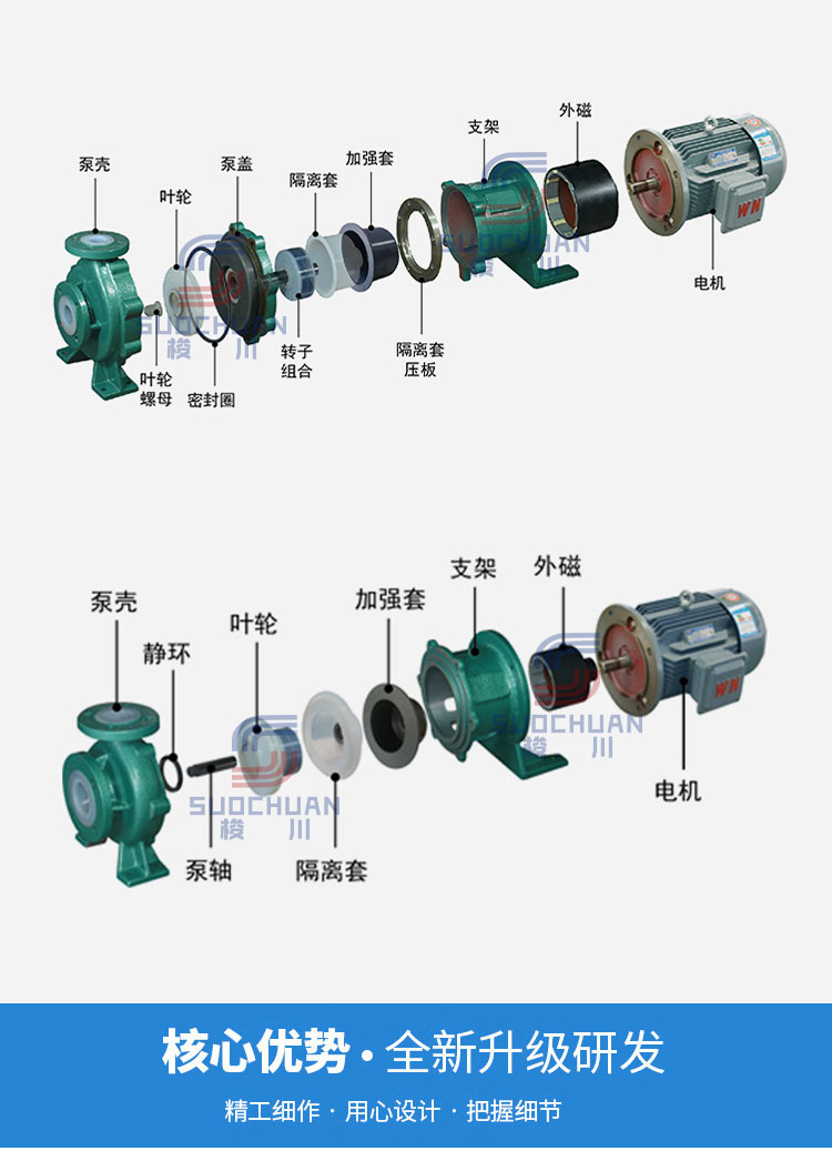 IMD系列磁力驅動泵,取消了軸封,利用磁力偶合間接傳動,有效消除了滴漏的現象。